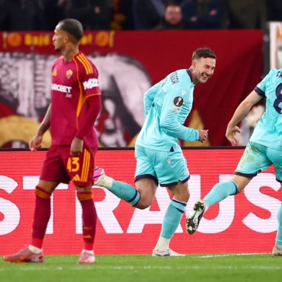 بولونيا خطف بطاقة العبور إلى ربع نهائي الدوري الأوروبي بعد فوز دراماتيكي مثير على روما بنتيجة (5-4) في مجموع المباراتين، حيث حسم نيكولو كامبياجي التأهل بهدف قاتل في الوقت الإضافي من مباراة الإياب التي انتهت بانتصار بولونيا 4-3. كما تأهل أستون فيلا بعد فوزه على ليل (2-0)، ورافقاه ريال بيتيس وبورتو إلى دور الثمانية.