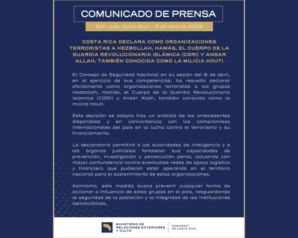 وأشارت الخارجية الكوستاريكية إلى أن هذه الإجراءات تمنح السلطات صلاحيات أوسع لتشديد ضوابط الهجرة ومراقبة التحركات المشبوهة لعناصر هذه الجماعات التي تصنف كتهديد مباشر للأمن والسلم الدوليين.